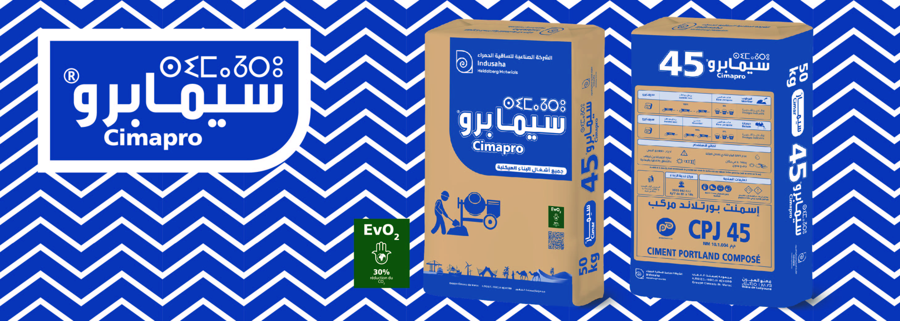 Cimapro® est un ciment portland composé, CPJ 45, conforme et certifié selon la norme marocaine NM 10.1.004, composé d'un minimum de 65 % de clinker en plus d'autres ajouts qui lui confèrent de bonnes performances physiques, mécaniques et chimiques, répondant aux exigences de vos projets et travaux.