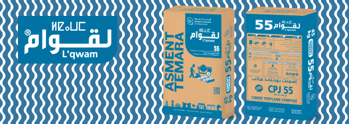 L'Qwam® est un ciment portland composé, CPJ55, conforme et certifié selon la norme marocaine NM 10.1.004, composé d'un minimum de 65% de clinker en plus d'autres ajouts qui lui confèrent de bonnes performances physiques, mécaniques et chimiques, répondant aux exigences de vos projets et travaux.